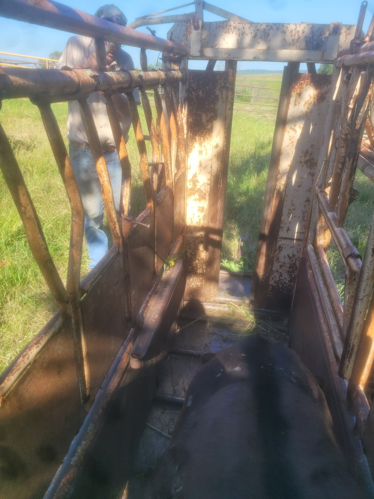 At some point I notice a collapsible Coleman camping chair being positioned between the pickup and the chute. The portable oxygen was deployed as well. One by one we made our way through the calves.