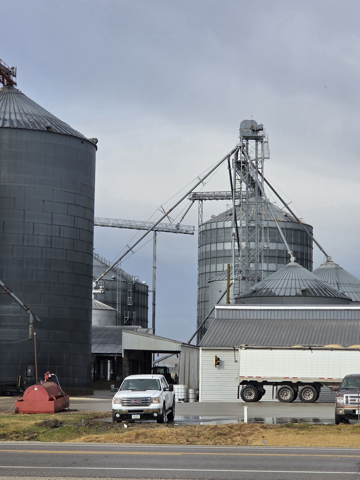 “They got everything about full, and they’re trying to use those bins behind the seed shed. The trouble is that drop tube has a hole in it. It was just sort of sprinkling yesterday, but it’s more than a sprinkle now. No one can get a crane in, so Larry is going to patch it with a sheet of tin and a roll of duct tape.”